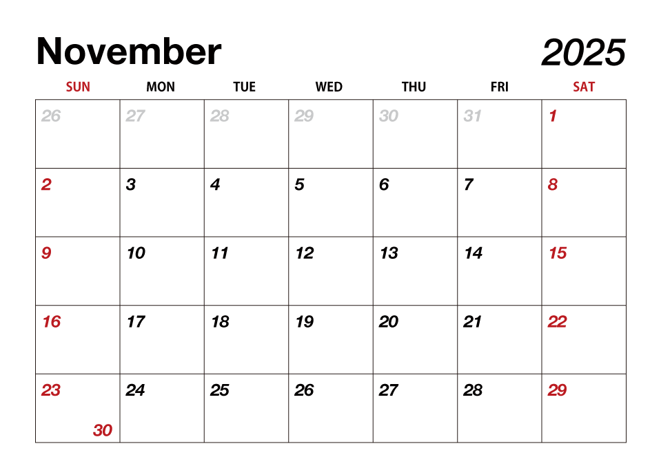 Calendario de noviembre 2021 para imprimir.